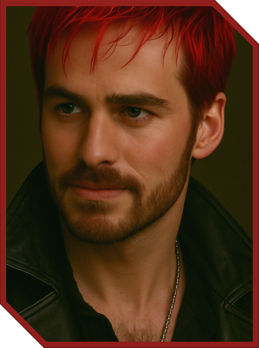 Physical Description | Even at first glance, it is clear that Nimo is no average man. His hair, the striking color of red kelp, peppers his chest, stubbles his face, and shoots from his head in a red shock of sea-tamed waves. His eyes the color of the seas at twilight, all it takes is one cock of his head, one smirk from his lips, and a knowing rise from an eyebrow to know how truly deadly Nimo’s roguish charm is. Yet in the quieter, darker moments, if one observes the man, it is clear that his charisma is not the only dangerous thing about him. | |
