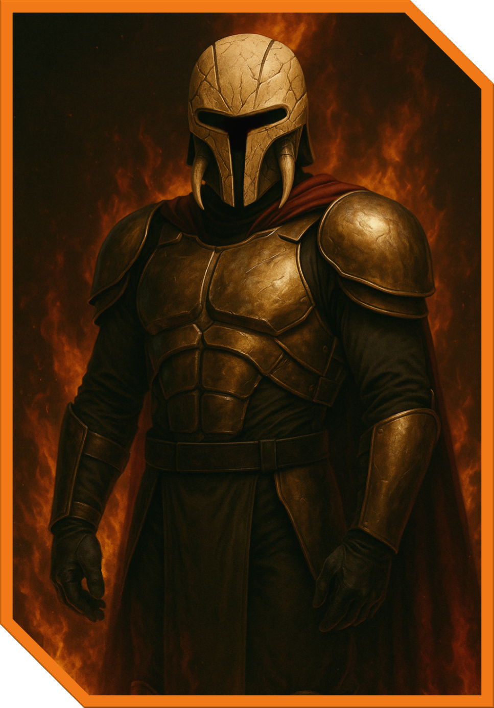 A physically-imposing figure, next to nothing is otherwise known about the true identity or appearance of the current Mandalore. |