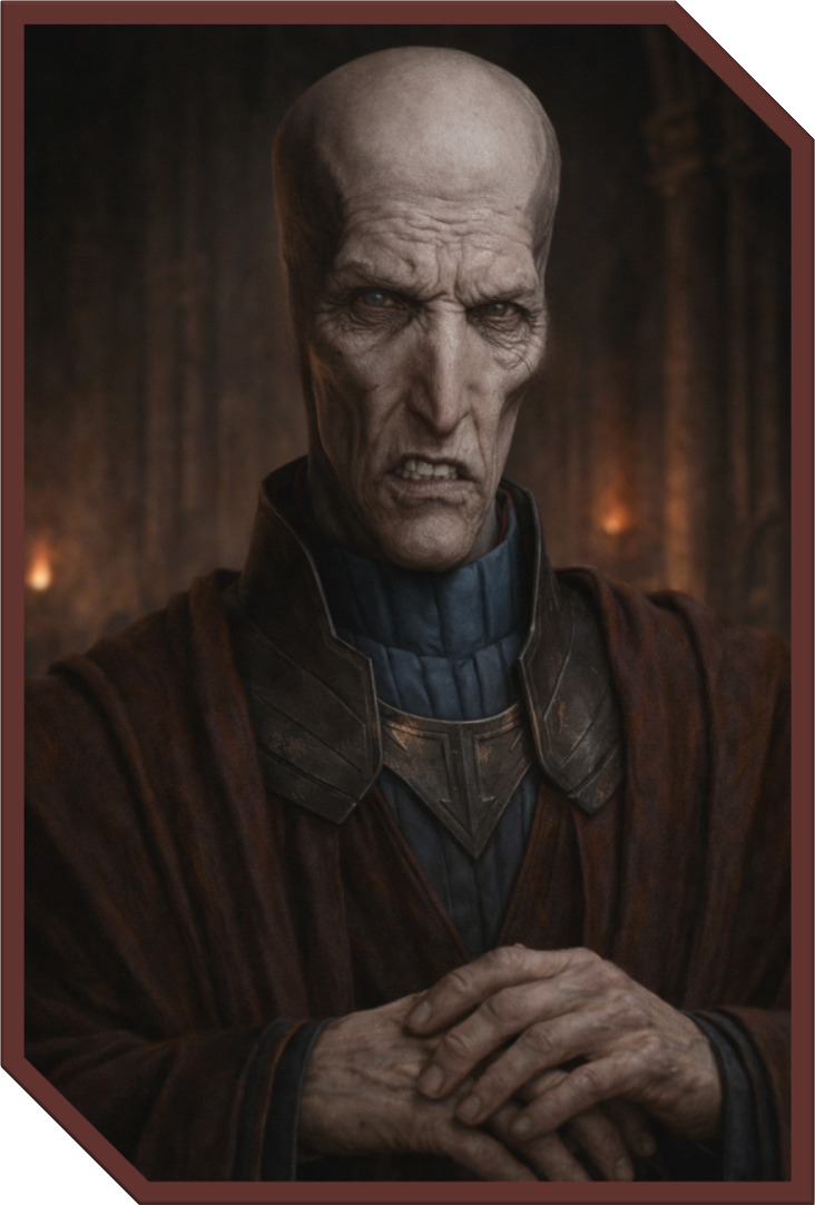 | History | Hesk Scivo is a Muun financier who has risen to prominence through his leadership of Undervos Holdings, a modular corporate entity specialising in industrial logistics, resource extraction, and controlled vice. Originally one among several senior executives, Scivo gradually consolidated control of the organisation through procedural dominance, internal restructuring, and the careful elimination of rival interests, through the careful support of the Sith under Lord Serus. Undervos Holdings is now prominent in the synthspice production facility on Sleheyron, where Scivo has demonstrated an unusual ability to operate in proximity to Sith interests without becoming subordinate or expendable. During this period, Scivo became one of a limited number of individuals aware of the continuity between Thane of Caanus and Lord Serus, the first Sith of this current age. In the political sphere, Scivo and Undervos Holdings successfully backed a preferred Senate candidate, achieving influence through procedural control and economic pressure rather than overt coercion. This success significantly increased Undervos' standing within both Republic and underworld financial networks. By the turn of 1,218 ABY into 1,219 ABY, Scivo has established himself as a key intermediary between state actors, criminal syndicates, and the emerging Sith. He is actively involved in efforts to dismantle the Cult of Axion by targeting its financial, logistical, and criminal support structures. Though he does not command fleets or armies, Scivo's influence is felt through contracts, supply chains, and economic inevitability. |