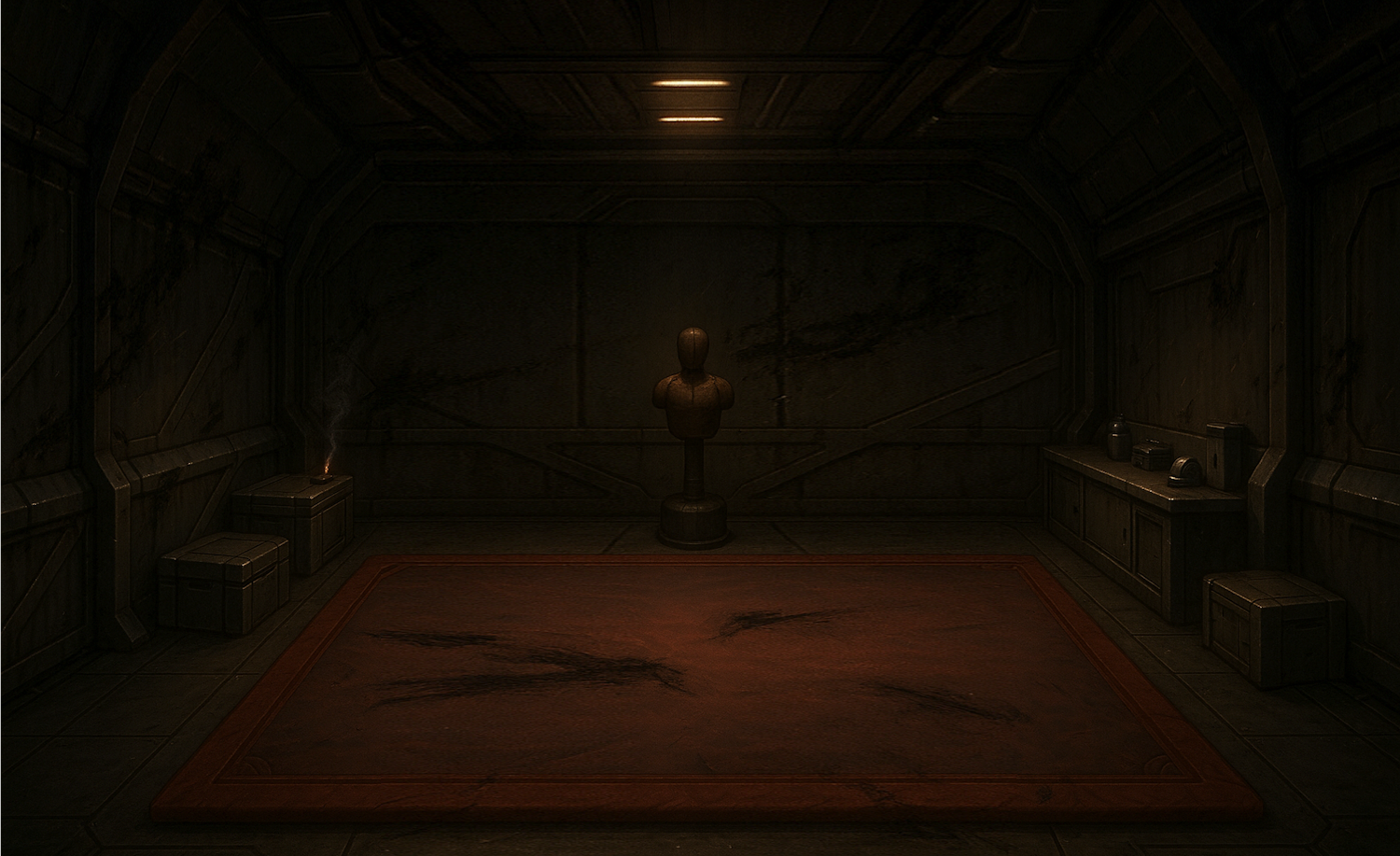 This converted cargo-hold has been cleared and a large training mat has been laid out across the centre of the room. A dummy and other equipment, such as training remotes have been placed inside. The room is used for sparring sessions and meditation, mostly by the Force-using members of the crew.